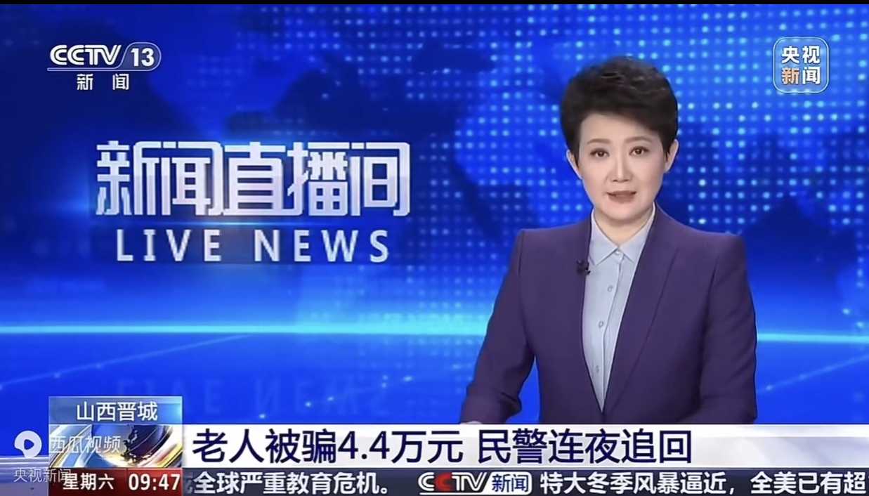 【媒体关注】央视 | 山西晋城:老人被骗4.4万元 民警连夜追回