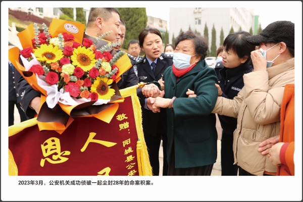 本版块共展出12幅照片,主要反映各行政执法单位的执法活动,包括部署专项行动、抓捕犯罪嫌疑人、开展执法检查等场景。如:公安机关坚持命案必破,万里追凶,侦破一起尘封28年的命案积案,受害人家属向警方赠送锦旗,表达谢意的场景;公安机关专案组民警走过26省64市进行侦查追捕,行程10万余公里,历时28年,最终在四川甘孜抓获犯罪嫌疑人;男子5岁时在城区被拐,时隔26年之后,已为人父的他和亲生母亲紧紧拥抱在一起这也是公安机关开展“团圆行动”以来,为群众找回的第50个孩子。