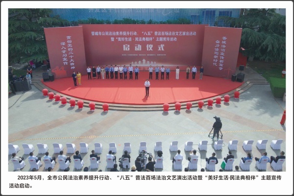 普法活动是推进平安建设、法治建设的基础性工作。本版块共展出26幅照片,是晋城市开展法治宣传教育的几个典型场景,分为法治讲座、法规培训、学法活动、现场宣传、送法下乡、入企宣传、校园宣传等等。五年来,全市382名村(社区)法律顾问为1715个村(社区)提供法律咨询和普法宣传5.2万余次。