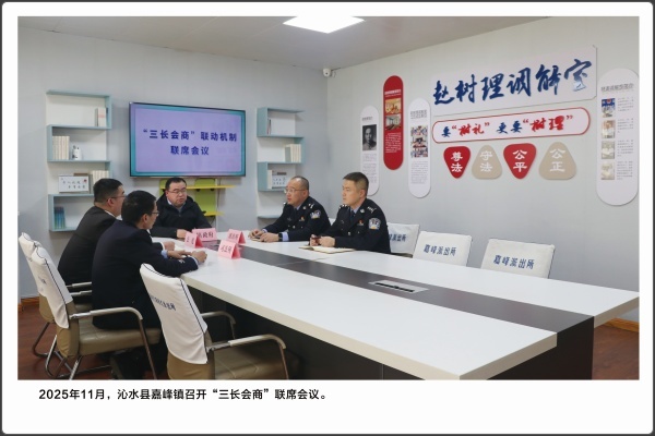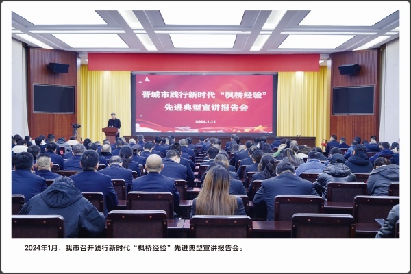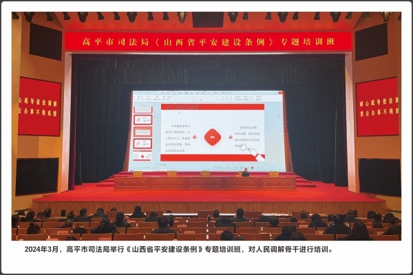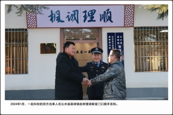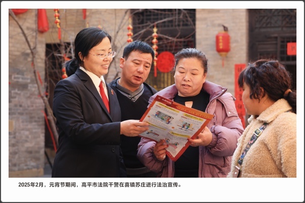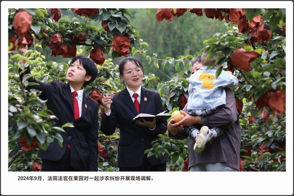 法律的生命力在于实施。运用法治思维和法治方式化解矛盾,推动矛盾纠纷预防化解工作法治化,是政法机关的一项重要工作。本版块共展出5幅照片,包含“赵树理调解工作法”在2023年被中央政法委表彰为全国新时代“枫桥经验”先进典型;2024年9月,高平法院法官在果园里,对一起涉农纠纷开展现场调解。