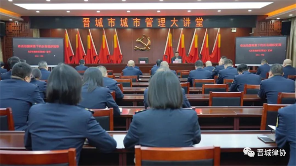 北京盈科(晋城)律师事务所刑事法律服务中心主任郭剑律师在晋城市城市管理局开展《反有组织犯罪法》专题宣讲。