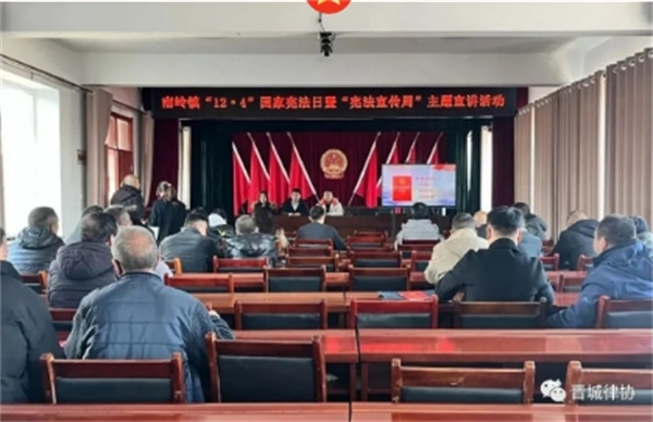 北京盈科(晋城)律师事务所李剑涛、郭甜甜律师在南岭镇为全镇32个行政村主干、法律明白人开展宪法宣传周法律讲座。
