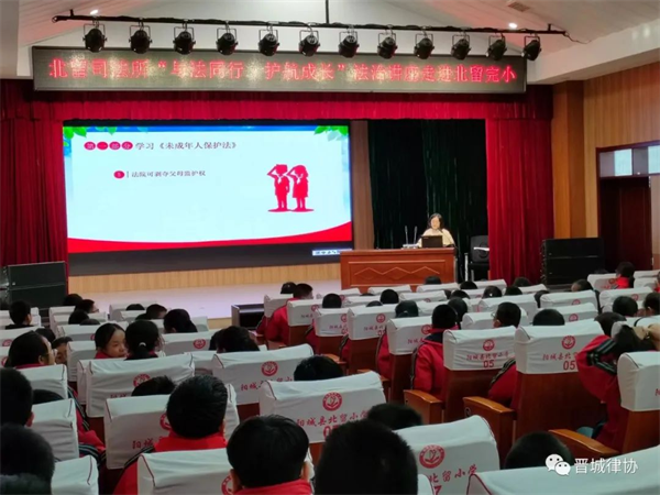 山西获泽律师事务所李雪律师前往阳城县北留镇完小,以《与法同行 护航少年成长》为主题,向该校学生介绍了《未成年人保护法》及校园欺凌方面的相关法律知识。