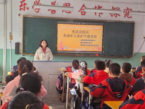 山西睿恩律师事务所宋婧律师在高平市神农镇团东小学开展未成年人保护专题讲座。