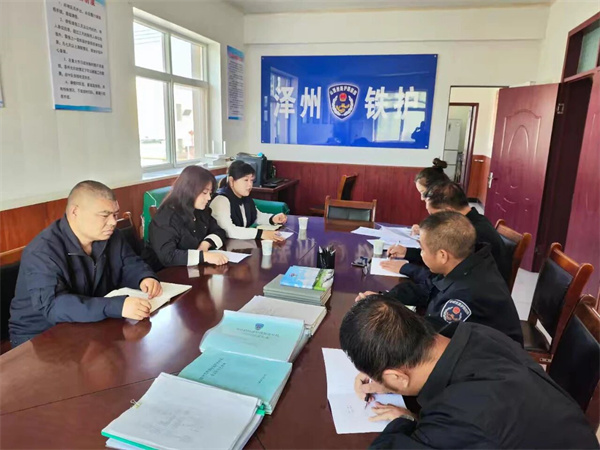 在泽州,晋城市护路中心邓珂珂、王琴琴与护路队员围绕“两节”护路工作开展座谈交流,详细询问巡逻路线规划、值班值守安排及铁路线路安全隐患排查情况。