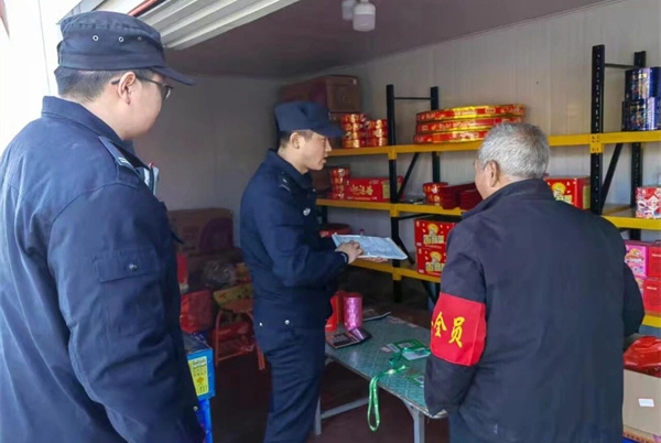 民警(队员)对各销售点《烟花爆竹经营(零售)许可证》、进货台账逐一核验核查,严防非法、不合格烟花爆竹流入市场。同步对消防器材配备、安全警示标志设置等情况开展细致检查,建立隐患整改“回头看”长效机制,确保各类安全隐患早发现、早预警、早处置。