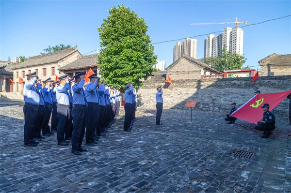 在庄严肃穆的氛围中,全体民警整齐列队,面向党旗,高举右拳,重温入党誓词。铿锵有力的誓言回荡在旧址上空,表达了全体民警继承革命先辈遗志、永葆忠诚本色、为党和人民事业奋斗终身的坚定决心。