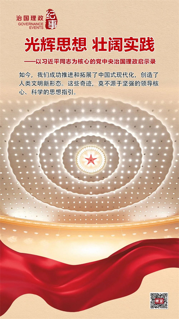 如今,我们成功推进和拓展了中国式现代化,创造了人类文明新形态。这些奇迹,莫不源于坚强的领导核心、科学的思想指引。