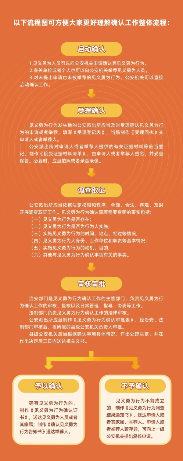 为更好地保护见义勇为人员合法权益,浙江公安机关持续规范见义勇为行为确认工作。2022年9月1日,《浙江省公安机关见义勇为行为确认工作实施办法(试行)》施行,明晰确认程序,明确各环节责任主体和实施部门,并配套涵盖确认工作全过程的12套法律文书,为规范见义勇为行为确认工作提供了指导。
