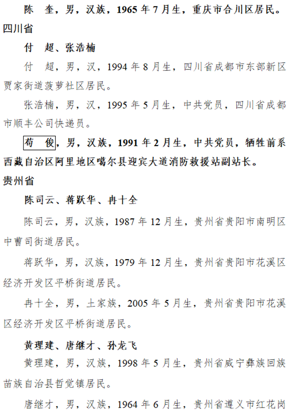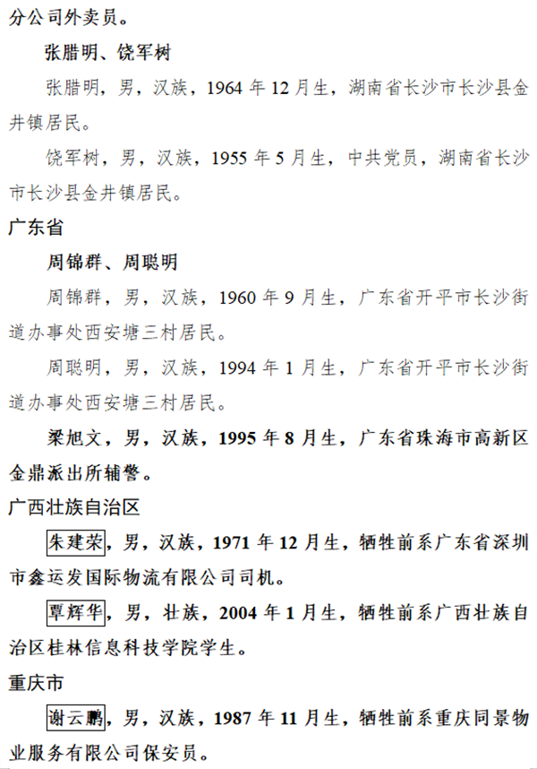本季度上榜的见义勇为勇士,董辉、谢云鹏、张润生、陈奎等为制伏犯罪嫌疑人身受重伤甚至牺牲;多地勇士面对暴雨洪灾、巨浪急流、爆燃火灾等险境,义无反顾、向险而行,黄启东、谢光荣、左明清、苟俊等救人牺牲,王玉平、黄超、邓亚群、宋国民、李红星等在极端环境中拼力施救,进一步体现了在突发灾害事故面前人民群众挺身而出救人于危难的英雄气概。他们不分年龄、不分地域,既有年过七旬的老人胡文祥、饶军树,也有年轻一代的学生覃辉华、李佳婷。上榜的群体类典型有8个,上榜个人类典型中有群众协助完成救人的事迹约18个,协同救人情况占上榜总数66%以上,体现了人民群众守望相助的良好社会风尚。