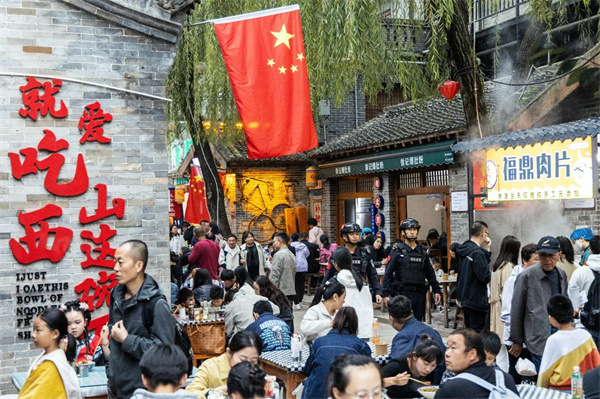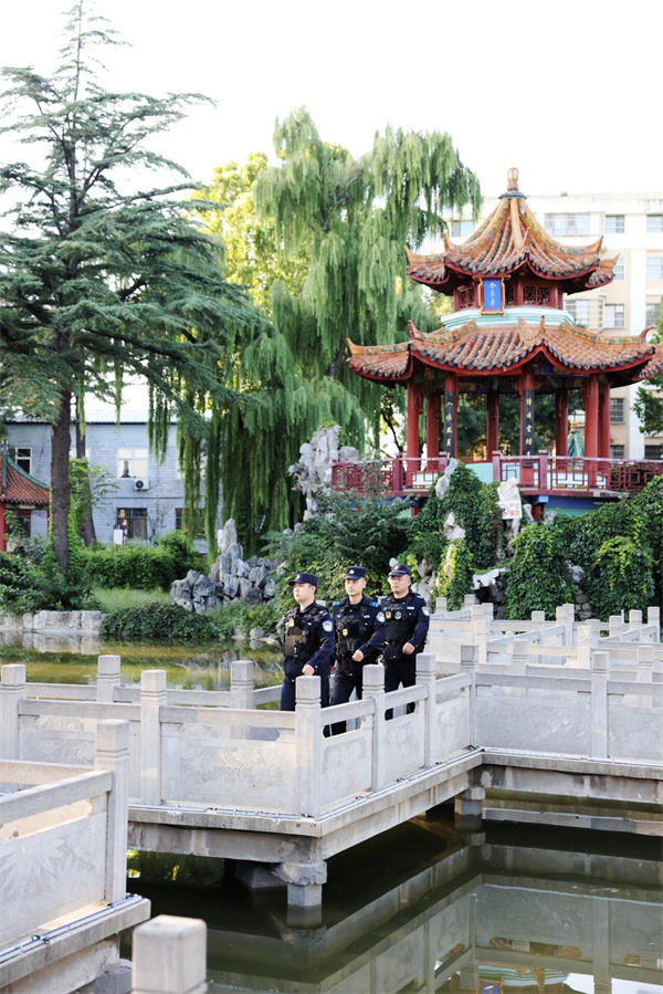 国庆中秋,喜庆祥和,城市张灯结彩,景区热闹非凡。晋城公安广大民辅警在全市主次干道、商场超市、大型广场等人流密集区域和各个旅游景区内外加强巡逻防控力度,“车巡+步巡+驻站”,陈警街面、动态管控,全面覆盖、不留死角,切实让人民群众感受到“身边有警察、时刻见警灯、路上有警车、难处警察帮”。