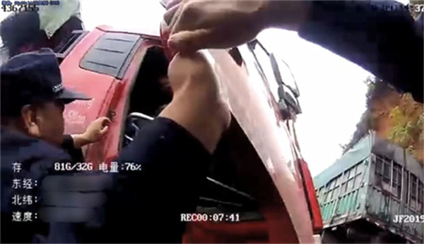 图为执法记录仪救援画面