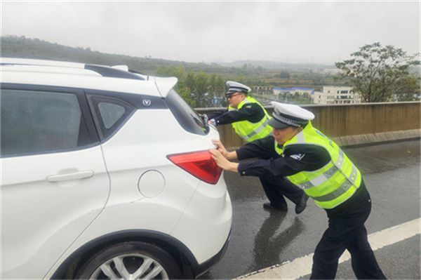 离去前,故障车主看着民警被雨水打湿的警服连连道谢:“这么大的雨,真是太感谢你们了!”
