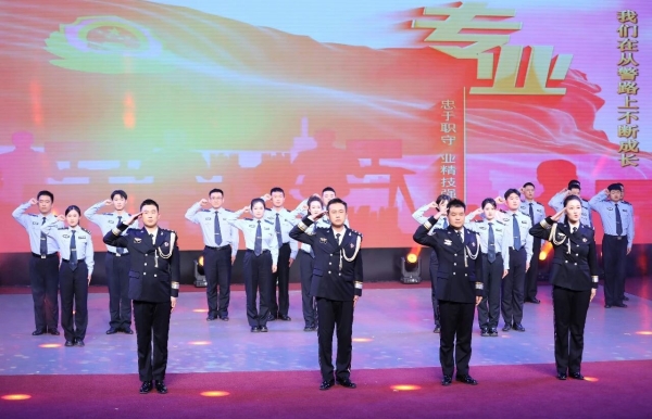全体民警身着警礼服,身姿挺拔、精神昂扬,整齐列队,迎警旗、重温公安机关人民警察誓词。活动在激昂的《中国人民警察警歌》中结束。