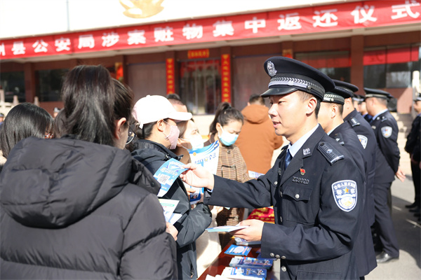 为充分展示泽州公安在打击违法犯罪上取得的丰硕成果,有效震慑违法犯罪行为,进一步提升人民群众的安全感和满意度,1月16日,泽州县公安局举行涉案赃物集中返还仪式。