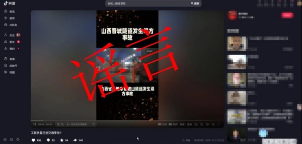 经查,12月10日,长治籍男子骈某通过AI工具生成“山西晋城市析城山隧道发生塌方事故,5人遇难”的虚假文案,又借助AI成片模块制作包含虚假事故场景的视频。为博取流量、吸引眼球,该于12月12日将视频发布至抖音、快手平台,相关视频在抖音播放量累计达1.5万人次,虚假信息的传播造成不良社会影响,严重扰乱了公共秩序。