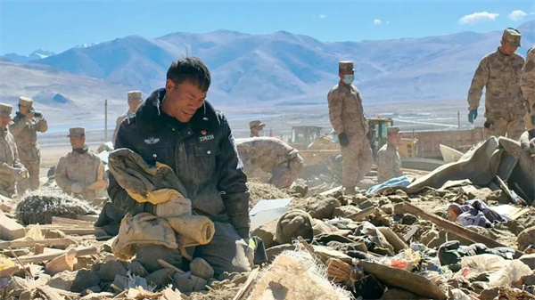 2025年1月7日9时,定日县发生6.8级地震。震中长所乡古荣村,是伦珠的岳母家所在地。地震发生时,两个孩子正托付给岳母照顾。待伦珠驱车赶到时,眼前的房屋已成一片废墟。他跪在废墟上,抱着小小的外套失声痛哭。他永远失去了两个孩子。