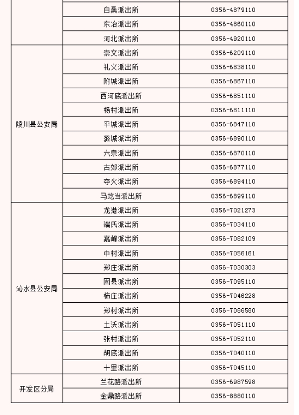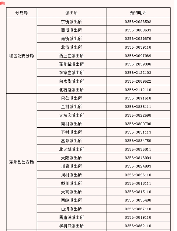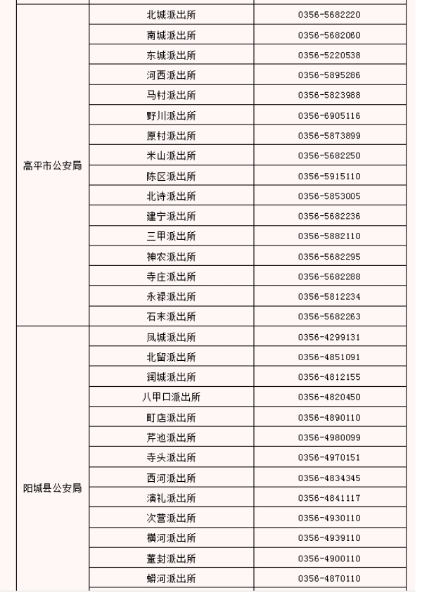全市派出所户政窗口服务电话