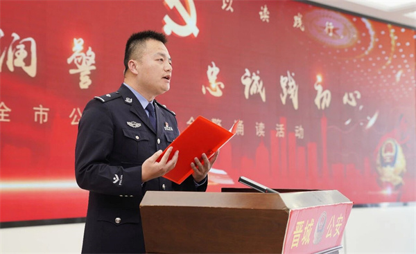书香润警营,忠诚践初心。为深入推进公安文化建设,赓续红色血脉,筑牢忠诚警魂。4月9日,晋城市公安局组织开展“党建领航·以读践行”全市公安机关“书香润警营 忠诚践初心”全警诵读活动。