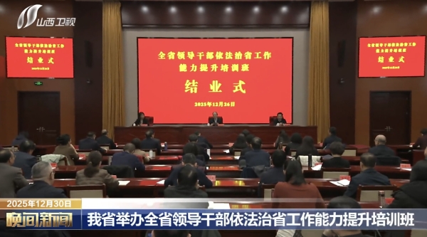 2025年12月22日至26日,省委全面依法治省委员会办公室举办全省领导干部依法治省工作能力提升培训班。省委政法委书记、省委全面依法治省委员会办公室主任郑连生出席结业式,并围绕深入学习贯彻习近平法治思想,全面理解现代法治文明的核心,健全完善法治体系路径,实现法治德治相统一,抓好领导干部“关键少数”等十个方面作了深入解读,对贯彻落实好习近平总书记对全面依法治国工作的重要指示和中央全面依法治国工作会议精神提出要求。