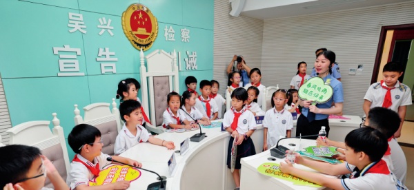 浙江省湖州市吴兴区人民检察院检察官带领小学生参观未成年人检察办案区(2024 年 7 月 3 日摄) 黄宗治摄
