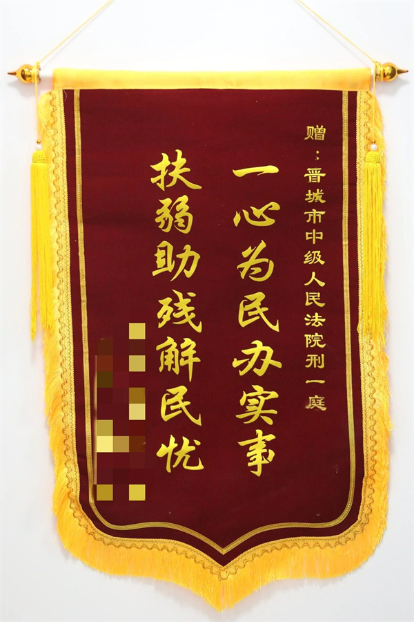 几天后,寒冬的清晨,她送来一面“一心为民办实事 扶弱助残解民忧”的锦旗。红底金字,在晨光里微微发亮。那一刻我突然懂得,“司法为民”从来不是抽象的口号,而是让一位母亲能在寒冬里,握紧孩子的手继续往前走的力量。