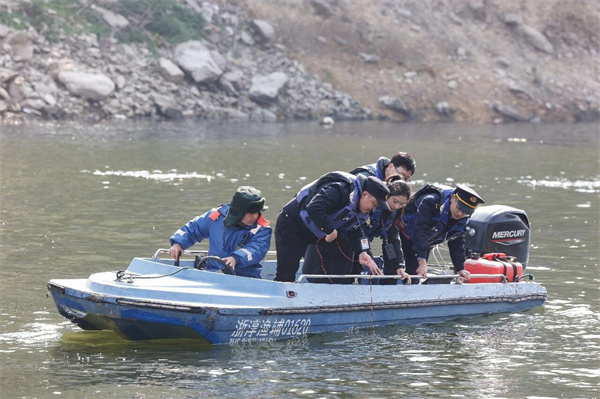 2025年12月4日,浙江杭州淳安县与安徽黄山歙县纪检监察干部及综合行政执法人员在浙皖交界处的新安江鸠坑口水域开展常态化巡河,共同保护渔业资源和水域生态环境。